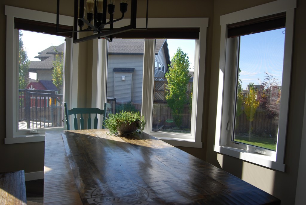 I used to sit at the end of the table shown in the above image so that I was surrounded by the windows and facing into the interior of my house. However, I decided to switch ends of the table so my back is now to the activity of the house and the view is great for staring into while I search my brain for inspiration.