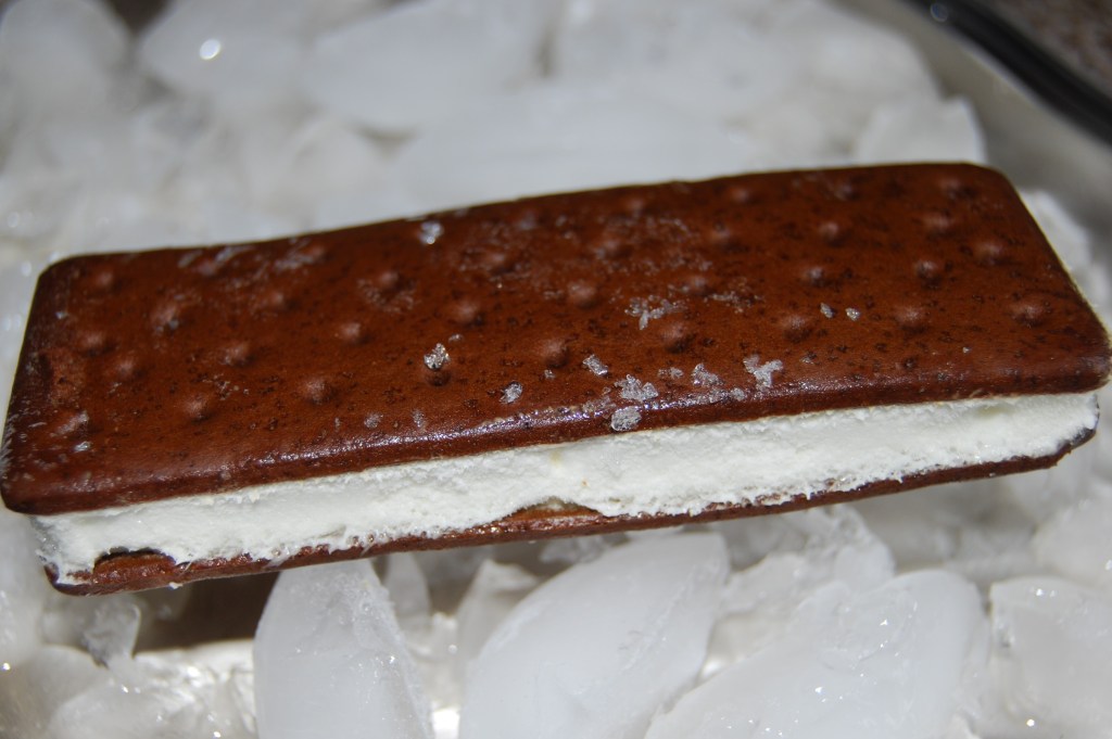 I close my eyes and remember that long ago taste. It is a creamy rich taste that is smooth and sweet. The iciness of the ice cream is set against the soft cold wafer-like cookies that sandwich it. The cocoa flavour is strong and sugary. It is creamy and melty in the mouth. The vanilla and chocolate balance each other in an easy bite!