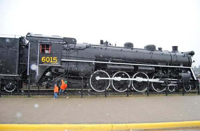 Let’s start our virtual coffee with my contribution to this week’s Photographing Public Art Challenge (PPAC). I confess that this isn’t a recent photo, but one from my back stock. This train is parked in Jasper, Alberta and it draws a lot of attention.