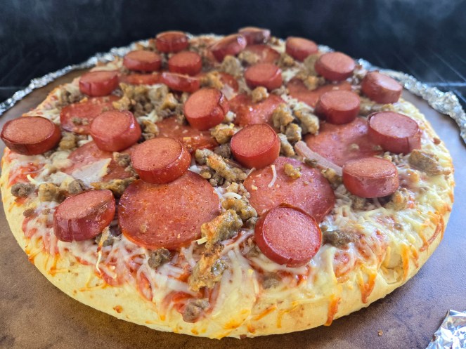 If we were having coffee, I would share that a piece inside my oven had fallen off. The oven is still under warranty, but the service person was on holiday. So, that left cooking meals challenging for the last week. So, two joyful things occurred from this. First, I bought my first air fryer, and I love how it cooks. The second, I barbequed a pizza! I plopped my pizza stone on the grill, and then a pizza. The bottom of the pizza was crunchy, but the rest of the crust was soft and hot. The pizza takes on the smoky flavour from the barbecue. It was tasty, and I will cook it that way again.